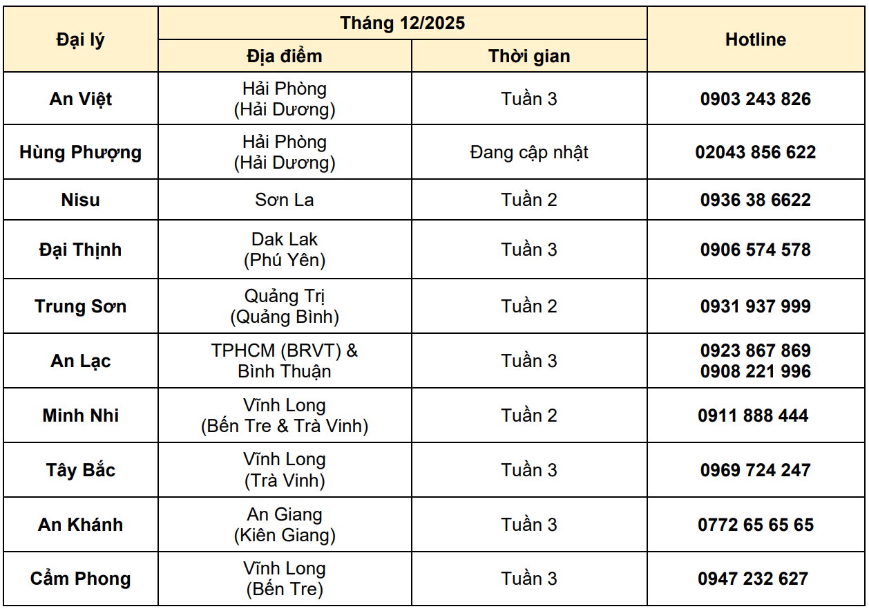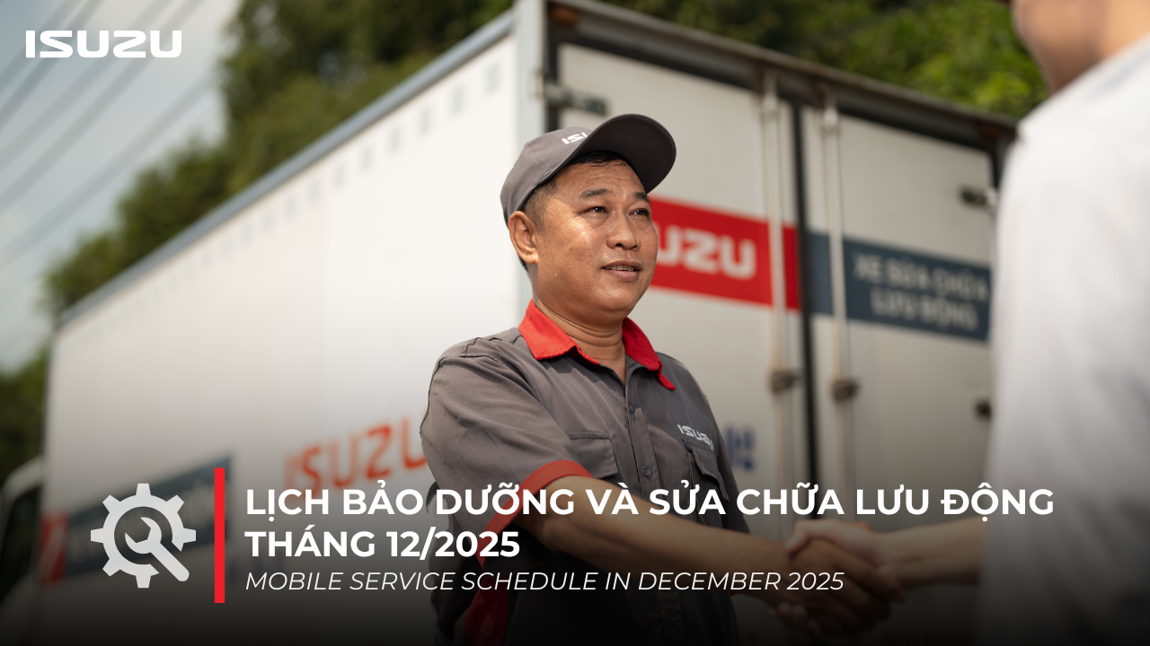 Nhằm tri ân khách hàng đã tin dùng sản phẩm cùng với mong muốn được đồng hành và chăm sóc cho xe được vận hành trong điều kiện hoàn hảo nhất. ISUZU Việt Nam xin gửi đến Quý Khách hàng lịch trình tổ chức chương trình “Bảo dưỡng & Sửa chữa lưu động” trong tháng 12 năm 2025.